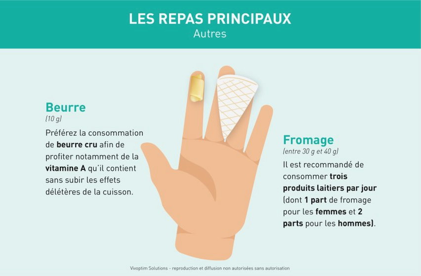 Cet outil, inspiré de « Guard your Health » peut vous être utile pour vous aider à quantifier vos apports alimentaires grâce à des repères simples et ludiques. Ce repère fonctionne pour les enfants (qui ont de plus petites mains donc des besoins énergétiques moindres) et pour les adultes.